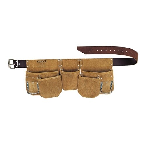 丈夫な革製の5つのポケット(大x2、小x3)は間口が広く、使いやすい。センターポケットはテープやその他工具を入れるのに便利です。