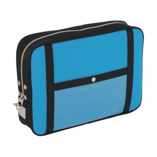 擦り切れに強く、耐久性に優れた帆布生地を使用したポーチです。南京錠で施錠可能な金具の付いたタイプです。片面に宅配伝票用透明ポケットが付いているので梱包無しでそのまま配送することができます。 |