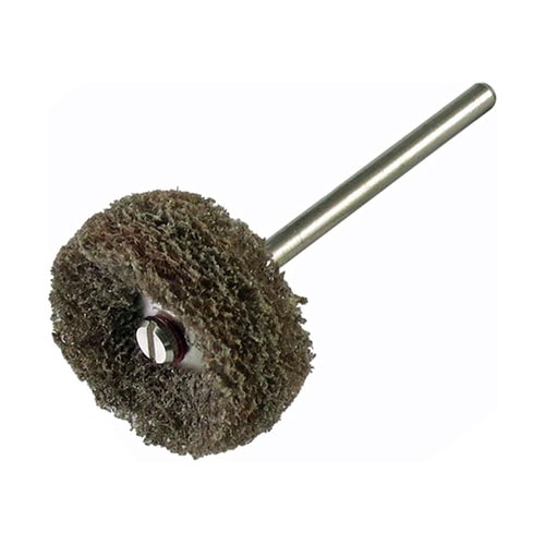 ペーパーフラップなどの後の仕上げ研磨に。ステンレス・アルミ等、金属の仕上げ研磨ほか、木材の木目出しやサビ取りに。当りが柔らかく、ワークの削り過ぎに仕上げ研磨ができます。 |