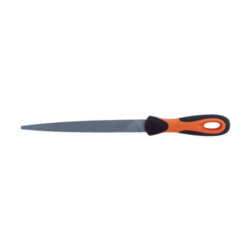 エッジは先端に向かって細くなっており、面は平行です。面は複目、エッジは単目です。細い溝、特に鍵の溝切りに適しています。エルゴハンドル付のヤスリです。 |