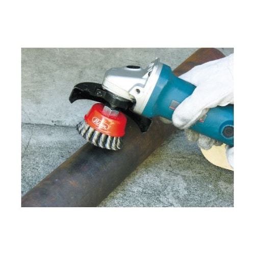ワイヤーの先端を渦巻状に開くことで、ヒネリ形状を長時間維持し、毛材1本1本にかかる負担を軽減することで折損や変形、開き等が少なく長持するカップブラシです。 |