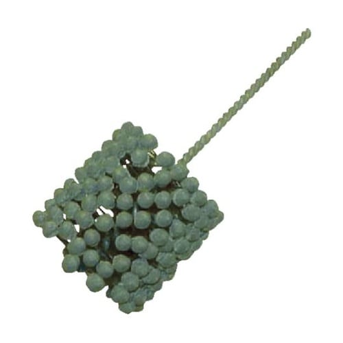 シャフトから出ているファイバー樹脂製の足に人口砥粒を焼結させた玉をつけた構造です。足がナイロン樹脂で弾力性に富み、ワークの内面のバリ、凹凸のあるワークの内面も研磨可能です。 |