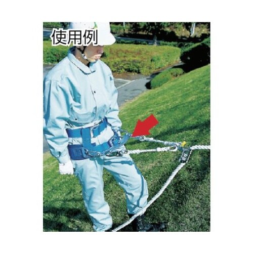 傾斜面での作業中ベルトで胴が締まるのを防ぐ金具です。バックサイドベルトに装着し、使用します。傾斜面ベルトの胴ベルトに装着し使用する。傾斜面工事・土木工事・法面工事用です。 |