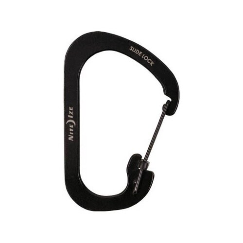 大型Dカンタイプのカラビナにロック機能を付けています。スリムで丈夫です。スライド式のロック機能が付いているので、落とす心配なく、安心してご利用いただけます。 |
