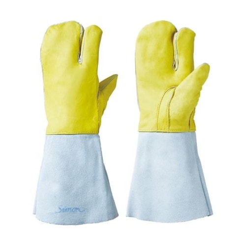 手のひら部が牛本革、袖部が牛床革の3本指タイプです。溶接・溶断作業に。 |