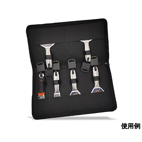 持ち運びに便利な取っ手付パテナイフを固定するベルト付(マジックテープ)ファスナー開閉式ポケット幅はパテナイフに合わせて設計されており、整理整頓が楽にできます。 |