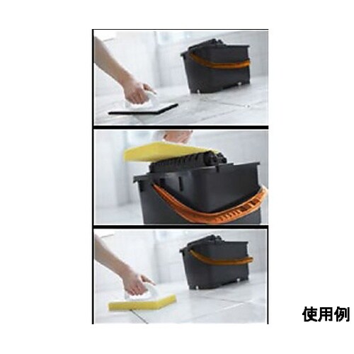 自在キャスター4輪(内2輪ストッパー付)タイルの洗浄と目地詰めにスポンジこて、グラウトこて、洗浄バケツのセットです。スポンジ部をローラー部に押し当てて、水分を取り除きます。 |