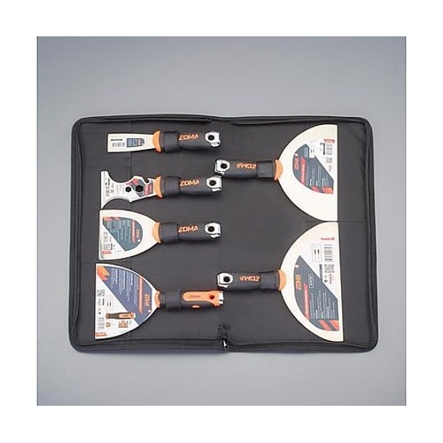 鏡面仕上げハンマーヘッド付パテナイフ刃幅150mmのハンドル部分には(+)ビット#1・#2、(−)ビット5・6mmが内蔵されています。ケースはファスナー開閉式で持ち運びに便利な取っ手付です。 |