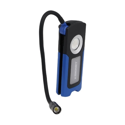 最大1500ルーメンのLEDワークライトです。360°可動式のフレキシブルライトがついており、狭所・奥まった箇所の照射に適しています。フレキシブルヘッドをスタンドのようにして自立させることが可能です。 |