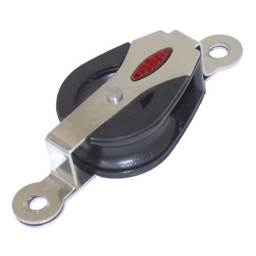 樹脂製(枠はステンレス製)滑車。ビス止め型:壁や柱に取り付け、ロープを通して軽量物の吊り上げや引っ張りにお使い下さい。 |