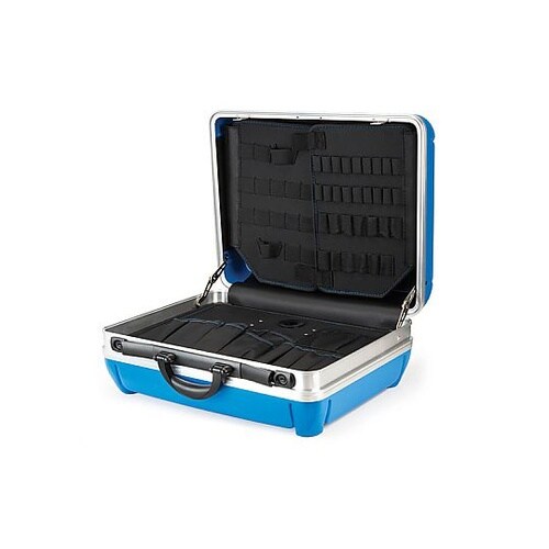 ハードな扱いにも耐えるアタッシュケースタイプのツールケース。工具を収納するツールパネルが3枚付属。ケース内部は工具に合わせて仕切り板の位置を変更できます。 |
