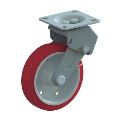 テンションスプリングを搭載しており、高耐荷重でありながら、走行緩衝性が抜群なキャスターです。緩衝型軽荷重台車に適しています。 |