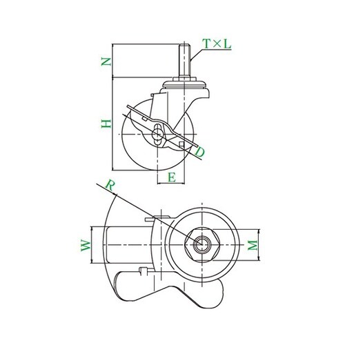 走行性、耐荷重を備えた標準的なねじ込み式キャスターです。旋回部の構造を二段構造にする事で、スムーズな旋回が可能になります。ストッパーにより車輪の回転をロックすることが出来ます。 |