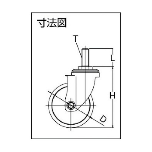 許容荷重(daN):60 | 許容荷重(kgf):62 | 車輪径D(mm):75 | 車輪幅(mm):26 | 取付高H(mm):98 | 軸長L(…
