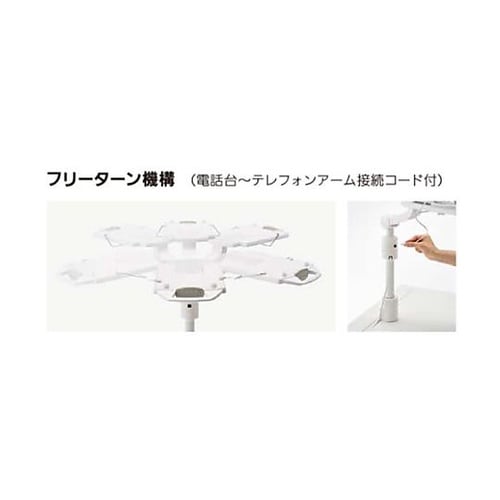 上締めクランプ方式デスクへの設置部分は上締めのクランプ式になっており脱着が容易にできます。フリーターン機構付属の接続コードを端子に接続すれば本体にコードがからまず、360°回転することができます。 |