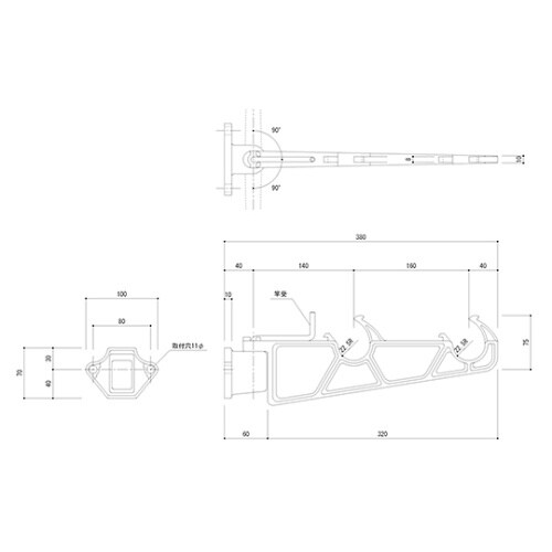 物干金物 バルコニー用 横収納タイプ ダークブロンズ SK−380A−BC SK−380A−BC 1個