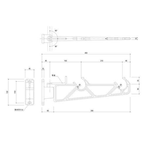 物干金物 バルコニー用 横収納タイプ ダークブロンズ SK−450B−BC SK−450B−BC 1個