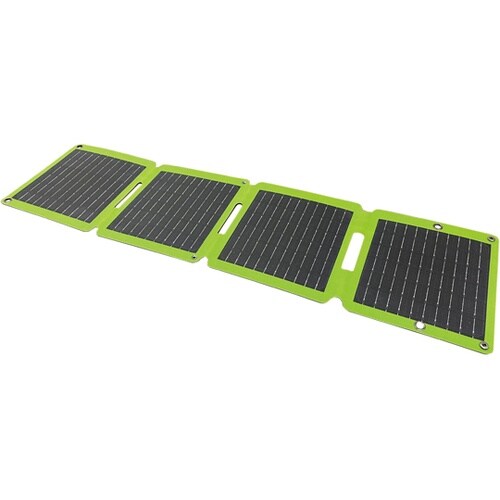 コンパクトな折りたたみソーラーパネルです。スマホやモバイルバッテリー、タブレットなどが充電できます。USB−Aポートは2つで、出力電流がわかるディスプレイを搭載しています。 |