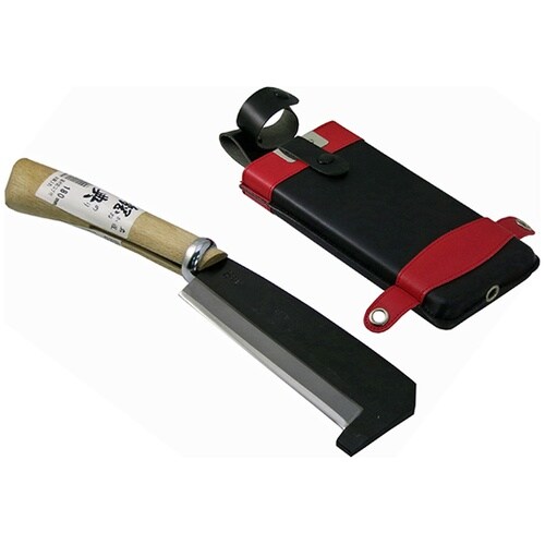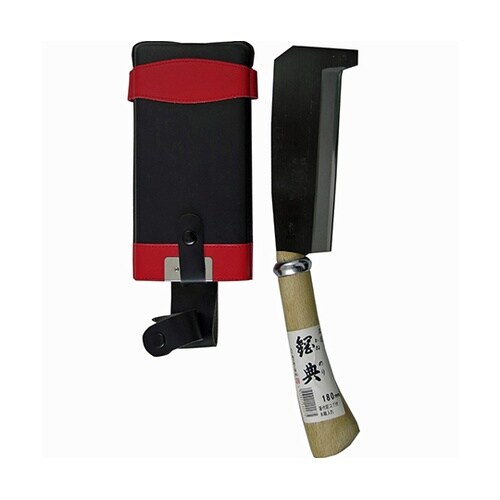 枝打ち、調木等の作業に最適です。枝を寄せたり、落ち葉を寄せたり、作業時の勢いで刃先をハシ(石ツキ)が付いている為に効率良く作業を行えます。ベルト通し付きの収納鞘がついているので効率良く作業が行えます。 |