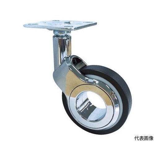 車輪中央部が空洞になっているデザイン性の高いキャスターです。ほこりなどが溜まりにくい形状にもなっています。シェルフ箪笥、ワイヤ家具、イス、デザインカートのホイールに使われます。 |