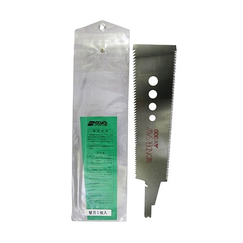 ワンダーソー両刃鋸(W−300)用の替刃です。四つ穴により、鋸身のバランスが最適です。鋸板の中央が程良く伸び、刃元が緊張しているので、挽き曲りが少なくなりました。 |