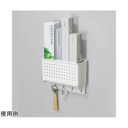マグネットで取り付けられるキッチン収納。ラップやアルミホイルなど、長さのあるものもスッキリと整理することができます。 |