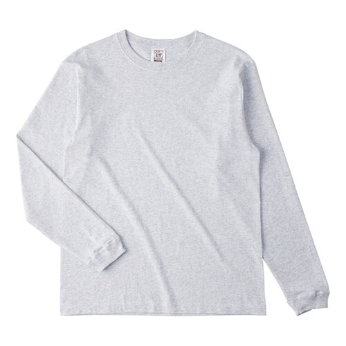 オープンエンドの糸はふっくらとしており、ボリュームがある一方で、ドライでざっくりとした印象です。リブ有リロングスリーブTシャツです。