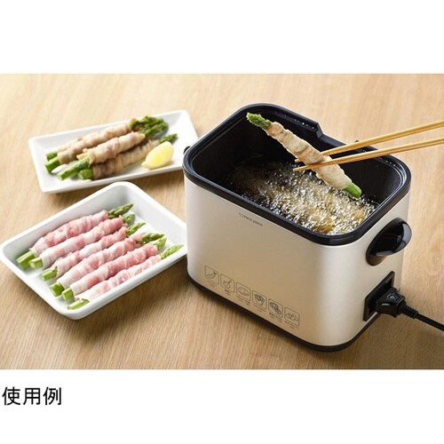 食卓で天ぷらや串揚げが楽しめる。メニューにあった温度調節ができる。油温度調節機能、約160℃から200℃。鍋は、フッ素樹脂加工でお手入れしやすい。保管用蓋付きでほこりが入らず清潔に保管できます。 |