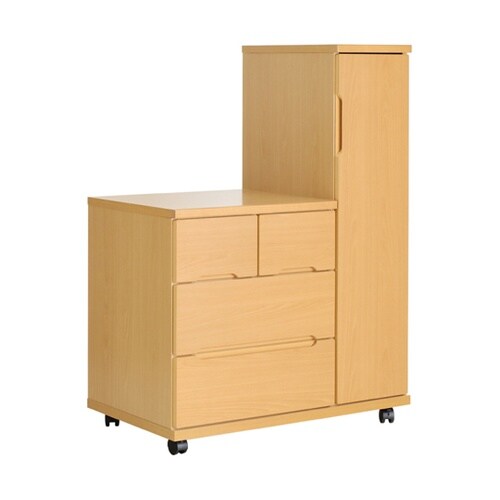 高齢者福祉施設、病院に特化したロッカー付きチェストです。前面が丸みのある仕上がりの引き出しは、軽い力で引き出せるレール付きですのでスムーズな開閉が可能です。また抜け落ち防止のストッパー付きです。 |