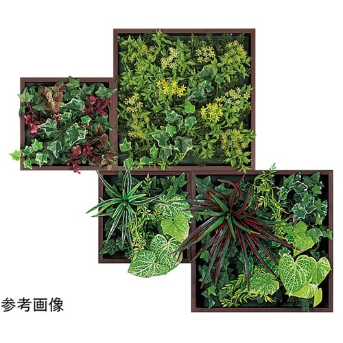 BOX型のグリーンパネルを組み合わせて壁面を演出する。