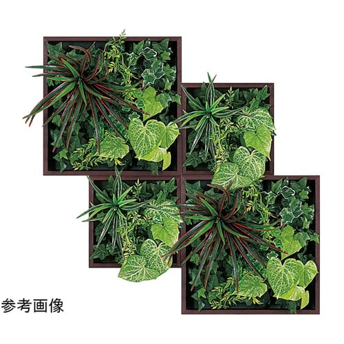 BOX型のグリーンパネルを組み合わせて壁面を演出する。