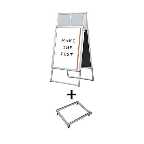 ポスターグリップスタンド看板カタログケース付(屋内用)B2両面シルバー アームキャスターセット PGSKK−B2RS−KSET PGSKK−B2RS−KSET 1台