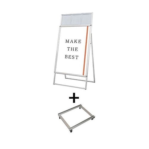ポスターグリップスタンド看板カタログケース付(屋内用)B1片面シルバー アームキャスターセット PGSKK−B1KS−KSET PGSKK−B1KS−KSET 1台