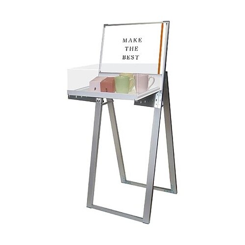 【消毒液ボトル台や記帳台に適しています】▼天板に物を置いてもポスターが隠れないように、約9cmのクリアランスを設けているので、消毒液ボトルの設置や記帳台、サンプル展示に適しています。 |