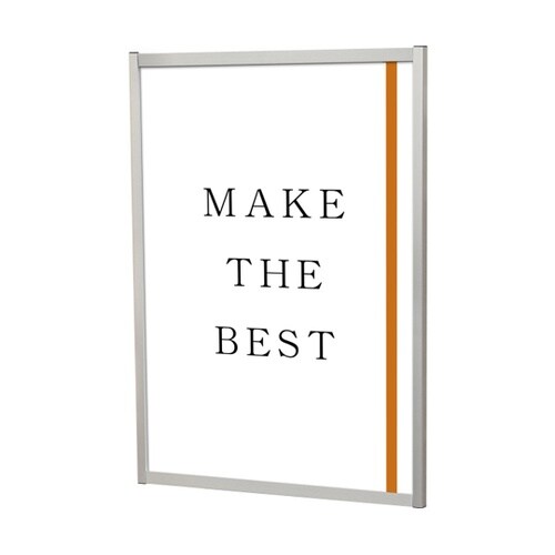 【ポスターの交換方法】▼上下2辺のフレームを開き、ポスターとアクリルカバーを片側に差し込むようにセットし、上下2辺のフレームを閉めアクリルカバーを固定します。