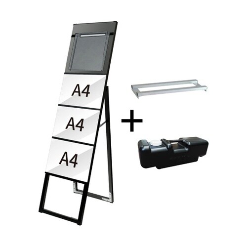 ブラックイージーリンクスタンド看板 A4 横3 片面カタログケース 屋内用 ウエイトアーム・水タンクセット BELSK−A4Y3K−KC−3SET BELSK−A4Y3K−KC−3SET
