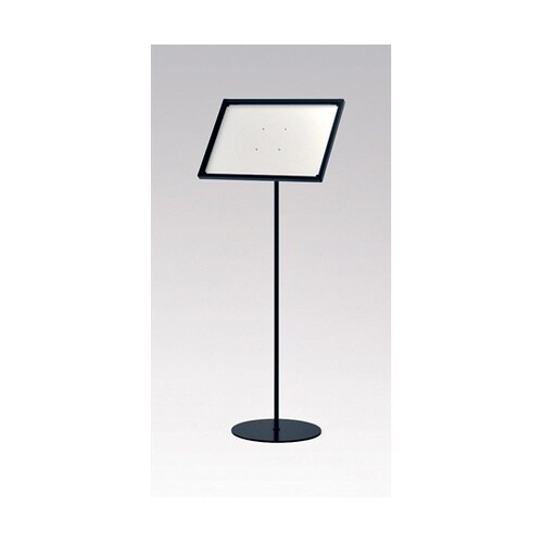 タテ・ヨコ切替え・角度調整可能なフロアスタンド。4辺開閉式のスリムフレーム。