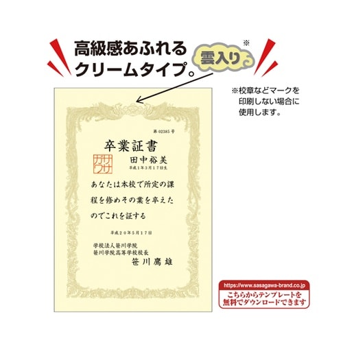 従来の手書きや通常印刷にも使用できますので、ニーズに合わせた使い方ができる本格的な賞状用紙です。 |