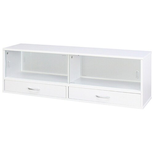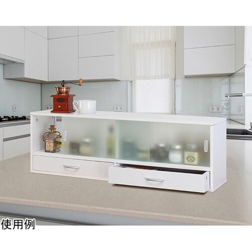 両面がガラス戸になっていますのでどちらからでも物を取り出すことが出来ます。引き戸なので扉を開閉するスペースも必要ありません。引出しも両側から開けることができます。 |