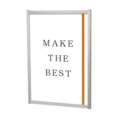 【ポスターの交換方法】▼上下2辺のフレームを開き、ポスターとアクリルカバーを片側に差し込むようにセットし、上下2辺のフレームを閉めアクリルカバーを固定します。