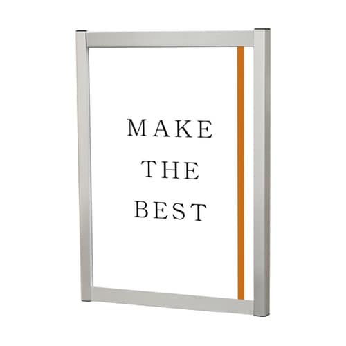 【ポスターの交換方法】▼上下2辺のフレームを開き、ポスターとアクリルカバーを片側に差し込むようにセットし、上下2辺のフレームを閉めアクリルカバーを固定します。