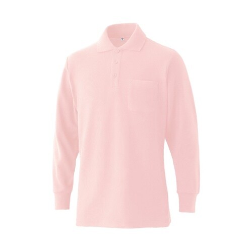 SLY804L 綿混長袖ポケ付ポロ ピン