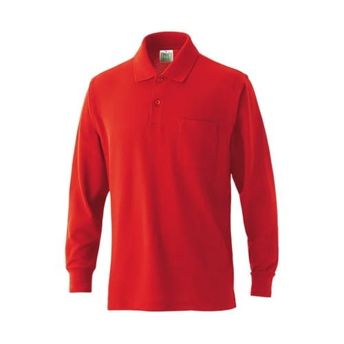 VP902 綿混長袖ポケ付ポロ レッド