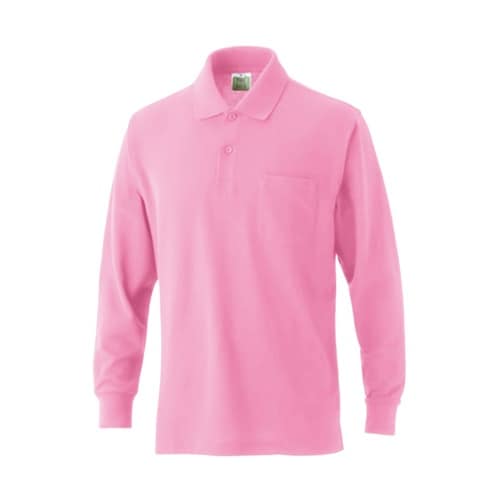 VP902 綿混長袖ポケ付ポロ ピンク