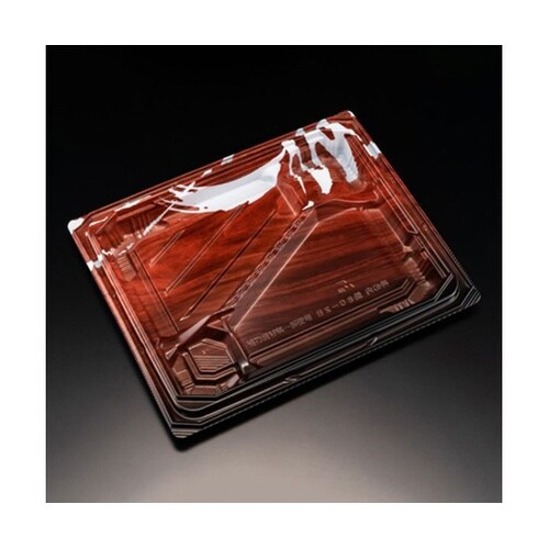 焼魚弁当に最適。具材を乗せられる仕切りで副菜を潰さず魚を盛付けることが可能。ワンタッチで蓋が嵌めやすく外れにくいだけでなく結露漏れしにくいスマート勘合で売場の清潔感をキープ。食材と色被りしない木目柄。 |