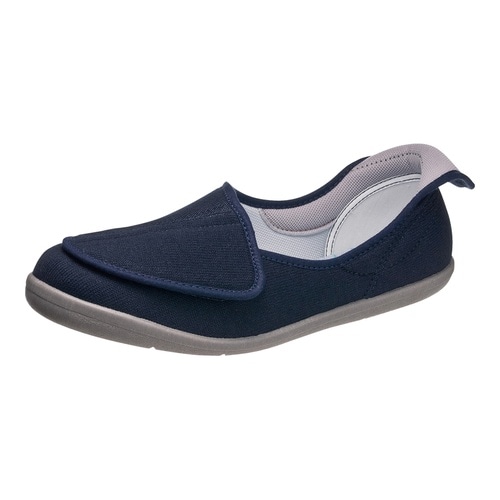 つま先・かかとをそり上げた、つまずきにくい設計です。足入れ時に足指がひっかかりにくく、手を使わなくても履き易い独自デザインの斜めカットです。 |