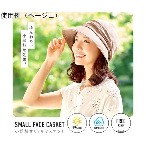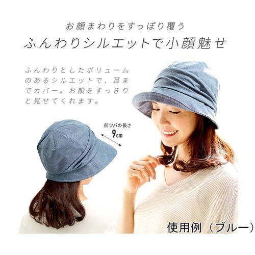 すっぽり耳までかぶれる小顔魅せ帽子です。内側はムレにくいメッシュ生地です。ワイヤー入でつばの角度が自由自在です。あごひも付です。頭囲部がゆるい時は調節可能です。 |