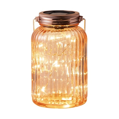 太陽光に当てるだけで最大6時間の自動点灯が可能なソーラーライト。大口のガラス瓶に繊細なマイクロLEDが煌めきます。 |