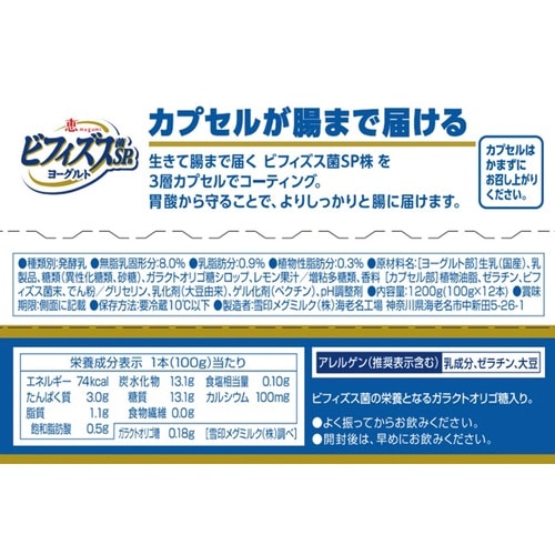 【冷蔵】雪印メグミルク 恵 megumi ビフィズス菌SP株ヨーグルト ドリンクタイプ(ケース) 12本×1個