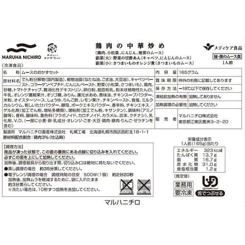 マルハニチロ食品 【冷凍】マルハニチロ やさしいおかずセット昼・夜のムース食 鶏肉の中華炒め  165g×6個 A065-6649
